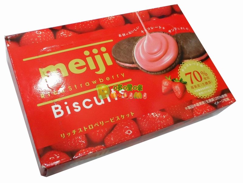 品 名:日本明治濃厚草莓巧克力夾心餅6枚 進(jìn)口食品批發(fā)
