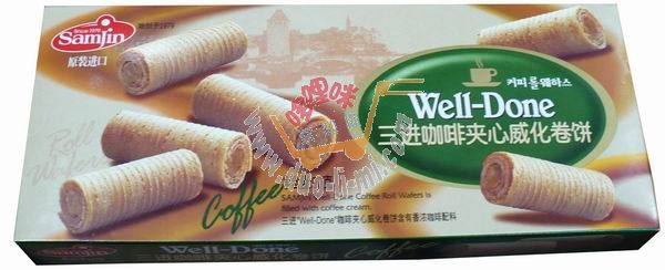 品 名:三進(jìn)咖啡夾心威化卷餅/90克 進(jìn)口食品批發(fā)